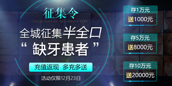 - 全城征集半全口缺牙人| 充值返现 特价种牙