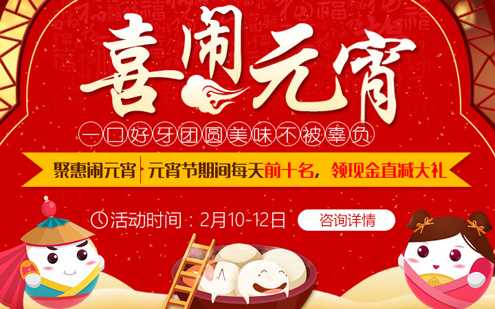 聚惠闹元宵:每天前十名,领现金直减大礼。